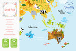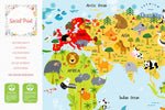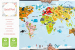 Colorful world map poster with animals for nursery is perfect wall hanging to educate your child. Learn colors the Montessori way and also animals of the world, sea creatures and geography in a fun way!