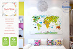 World map with animals for nursery is perfect wall hanging to educate your child. Learn colors, animals of the world, sea creatures and geography in a fun way!