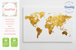 World Map Canvas print, Golden world map canvas, gold map, high quality world map. Any color customization of your choice. You can see gold foil color options on images attached.