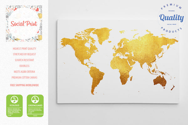 Gold World Map Canvas Print  World Map Canvas print, Golden world map canvas, gold map, high quality world map. Any color customization of your choice. You can see gold foil color...