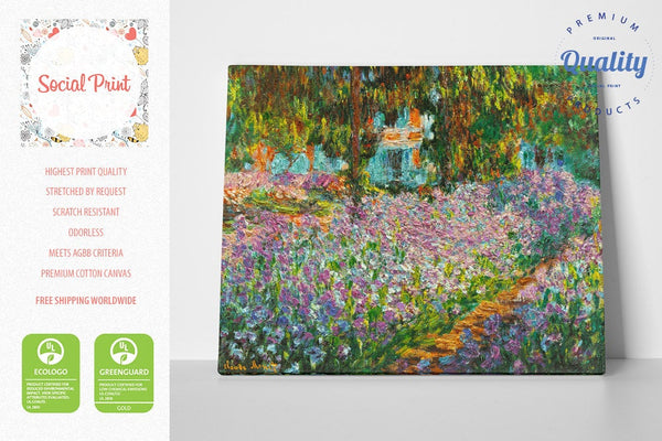 “My garden is my most beautiful masterpiece,” Claude Monet said, and if his paintings from his years in Giverny are any indication, then it is easy to believe him. We’d like to count his paintings, too, as part and parcel to that masterpiece, and Iris Bed in Monet’s Garden is a sublime example. The presentation of the bright beds, full to bursting with spring irises, stretching in straight lines out from the house toward the viewer, reveal his sensitivity to composition in the garden and on the canvas. Monet worked in plein air during his first years at Giverny, in the 1880s and 1890s, and it was in his garden there that he developed the layouts and motifs that he would express in his paintings.
