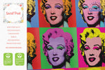 Untitled from Marilyn Monroe is probably Andy Warhol's most popular work. Marilyn Monroe died in August 1962. In the following four months, Warhol made more than twenty silkscreen paintings of her, all based on the same publicity photograph from the 1953 film Niagara. Warhol found in Monroe a fusion of two of his consistent themes: death and the cult of celebrity. By repeating the image, he evokes her ubiquitous presence in the media. The contrast of vivid colour with black and white, and the effect of fading in the right panel are suggestive of the star’s mortality.