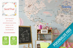 Highly Detailed World Map Wallpaper for Girls Room with Hot Air Balloons, Planes, Animals, Countries & Cities, Nursery Wallpaper / Non-Woven wall coverings Decorate your kids room walls with this unique highly detailed...