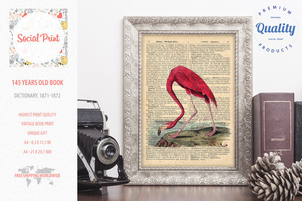 American Flamingo - J.J. Audubon, 147 years old Vintage book page print