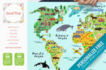 World map with landmarks and sights, animals and planes for baby room is perfect wall hanging to educate your child. Learn landmarks, countries, sights of the world, colors, animals, sea creatures and geography in a fun way!
