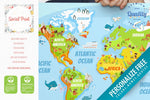 World Map for Children and Kids, Poster Print, Baby Gift, Nursery World Map, Unique Baby Gift, Kids World Map Poster World map with animals for nursery is perfect wall hanging...