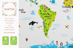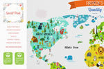 World map with IKEA animals for nursery is perfect wall hanging to educate your child. Learn colors, animals of the world, sea creatures and geography in a fun way!